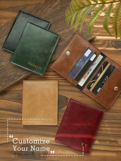 Personalized Oil Wax Leather Card Holder Wallet Custom Gold Monogram Name Slim Multi-Slot Credit Card Case With Gold Foil Lettering – Customizable Vintage Name Card Holder Gift For Women Men - Multicolor - View 1