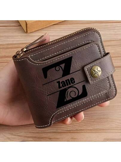 Personalized PU Leather Chain Short Wallet For Man Engraved Name&Text Bifold Stylish Brown Wallet For Man Valentines Birthday Christmas Gifts For Men Mini Wallet Purse Wallet Men Wallet Leather Small Wallet, All-Purpose, Large Capacity, Versatile, Multifunction, Basics, Business Casual, Commuting, Custom, Ideal Gifts For Her, Her, Family, Friends, Girlfriend, For Anniversaries, For Birthdays, For Holiday/ Vacation, For Outdoors/Outings/Travel/Hiking/Stadium/Sports/Climbing, For Business/Commute/Work/Office - Multicolor - View 1