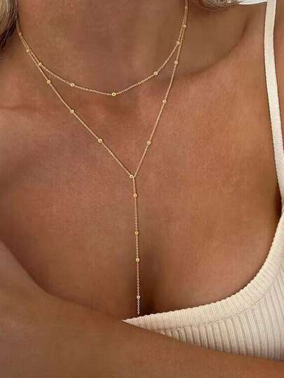 Personalized Simple Beaded & Geometric Pendant Necklace - Gold - View 4