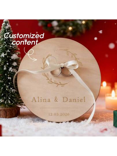 Personalized Wooden Wedding Ring Holder, Customized Name Ring Dish, Wooden Ring Tray, Round Ring Holder, Ring Dish, Customized Name Ring Holder, Floral Customized Ring Holder, Country Customized Ring Holder, Ring Holder, Wedding Ring Tray - Multicolor - View 1
