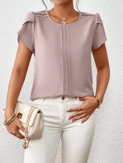SHEIN Clasi Petal Sleeve Press Crease Detail Blouse - Mauve Purple - View 1