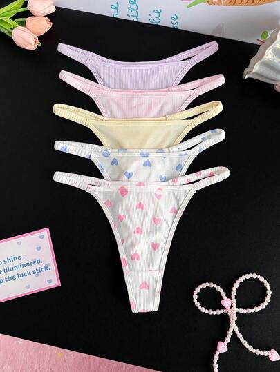PetitDoll 5pcs/Pack Women's Sexy Thong Panties, Sweet Ribbed Design - Multicolor - View 1
