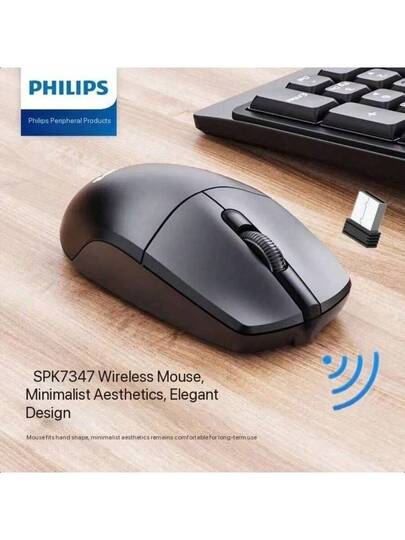 Philips SPK7347 Wireless Mouse, Compatible With Laptops And Desktop Computers, Business Office Use, 2.4G Mouse - Black - View 1