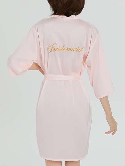 Pink Bridesmaid Robe With Back Bridemaid Embroidery - Baby Pink - View 4