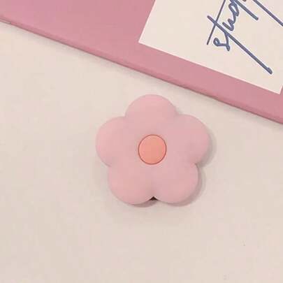 Giá đỡ điện thoại silicon gấp gọn hình hoa hồng màu hồng & kẹp giữ điện thoại