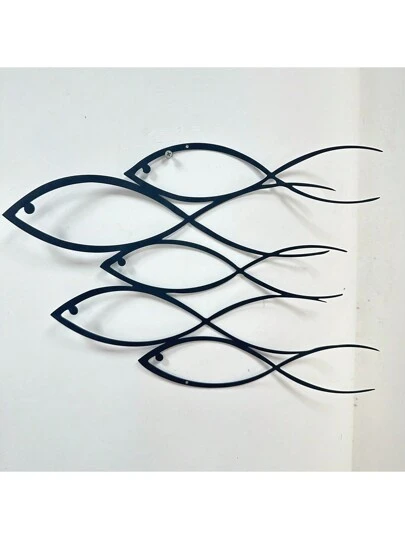 1pc Metal Shoal Of Fish Wall Art - Nautical Coastal Decor, Metal Wall Hanging Housewarming Gift,Home Decor ,Room Decor,Wall Decor - Black - View 1