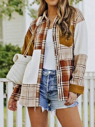 CILKOO Plaid Print Drop Shoulder Coat - Orange - View 6