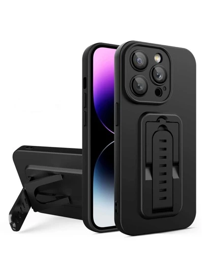 Plain Phone Case With Holder - Black - View 1