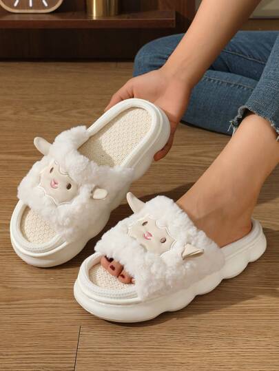 Linen Casual Slippers, Unisex, Breathable, Non-Slip, Thick Sole, Comfortable For Indoor & Outdoor Wear, Summer - Sheep - View 1