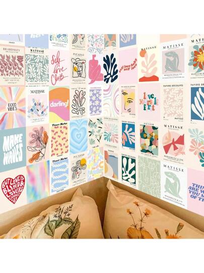 50pcs/Set Danish Pastel Posters, Pastel Danish Room Decor, Matisse Wall Art Room Decor Pictures, Preppy Wall Collage Kit For Bedroom Decor, Photos For Dorm, Wall, Room Decor For Everyone Home Decor Wall Decor Wall Stickers Stickers Living Room Decor - Multicolor - View 1