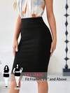 SHEIN PETITE CURVE Plus Size Solid Color Studded Decorated Fitted Skirt Summer Outfits
