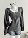 SHEIN LUNE 1pc Plus Size Women's Casual Simple Long Sleeve Crew Neck One Shoulder Strap T-Shirt, Suitable For Spring And Autumn