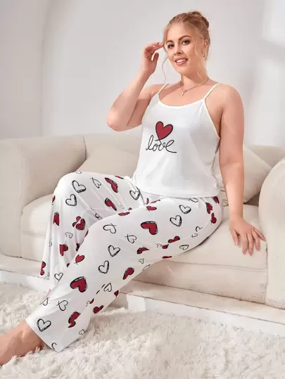 Plus Heart & Letter Graphic PJ Set / Pajama Set - White - View 1