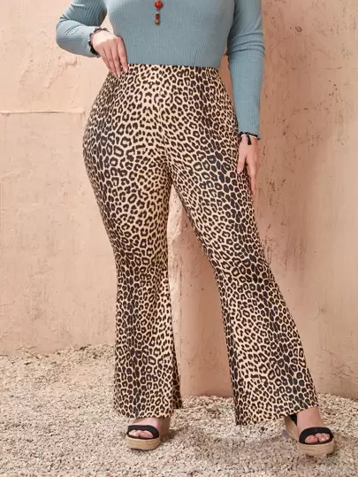 SHEIN Clasi Plus High Waist Leopard Print Flare Leg Pants - Multicolor - View 1
