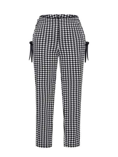Plus Houndstooth Print Knot Side Pants - Black and White - View 1