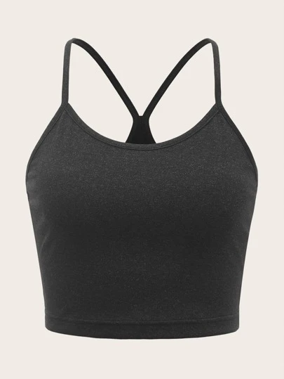 SHEIN EZwear Plus Marled Print Racerback Cami Top - Black - View 1
