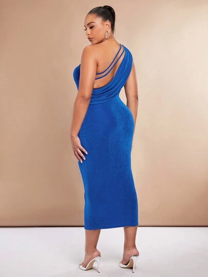 SHEIN BAE Plus One Shoulder Backless Bodycon Dress - Blue - View 1