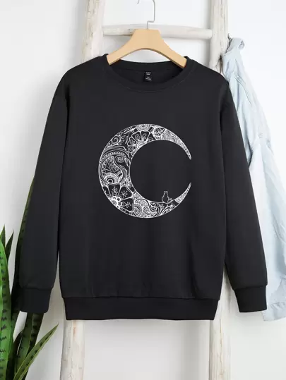Plus Paisley & Moon Print Sweatshirt - Black - View 1