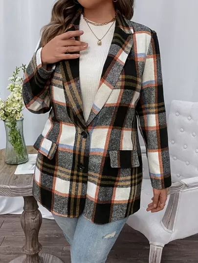 Celure Plus Plaid Single Breasted Blazer - Black and White - View 1