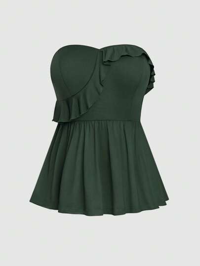 Celure Plus Ruffle Trim Tube Top - Dark Green - View 1
