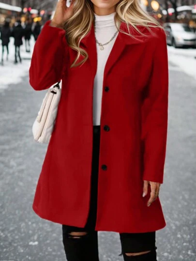 Calvaya Plus Single Breasted Overcoat - Burgundy - View 1