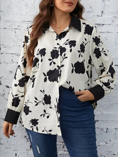 SHEIN Clasi Plus Floral Print Drop Shoulder Shirt - Multicolor - View 1