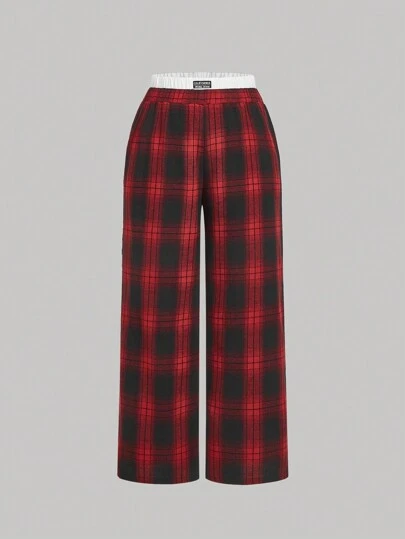 SHEIN MOD Plus Size Casual Double Waist Plaid Straight Leg Pants - Multicolor - View 1