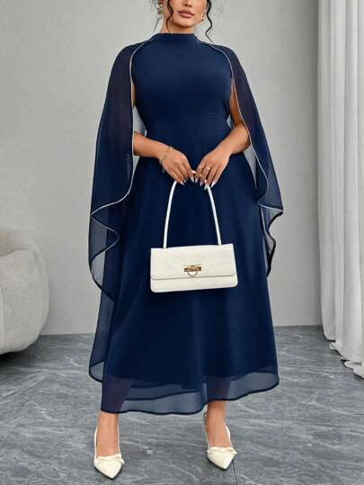 Modelyn Plus Size Elegant Office Commuter Long Sleeve Dress - Blue - View 1