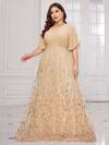 EVERPRETTY Plus Size Elegant Sequined V-Neck Ruffle Sleeve Black Formal Dress,Suitable For Party And Formal Events, Wedding Guest Dress Evening Dress