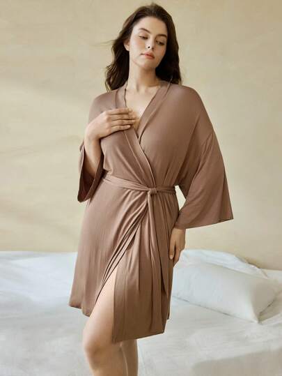 Ocili Leisure Plus Size Leisure Ultra Soft Robe, Silky & Breathable, Pairs Well With All Basics - Khaki - View 7