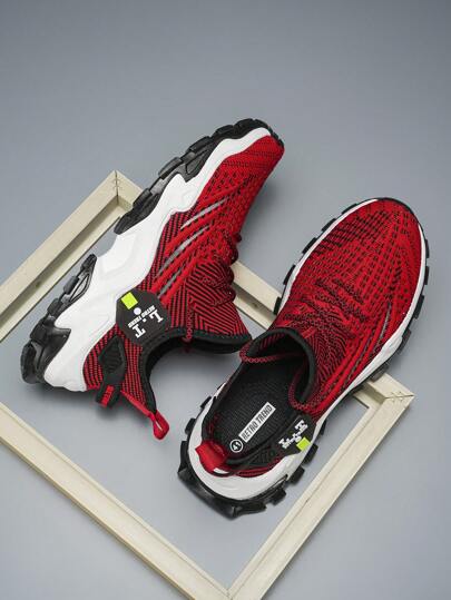 Plus Size Men's Thick Sole Breathable Casual Sneakers - Red - View 1