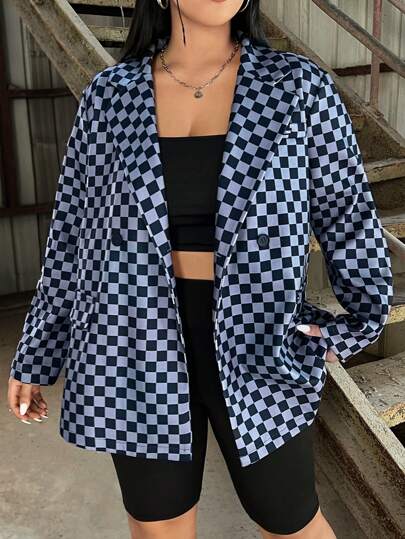 SHEIN EZwear Plus Size Plaid Lapel Blazer - Multicolor - View 1