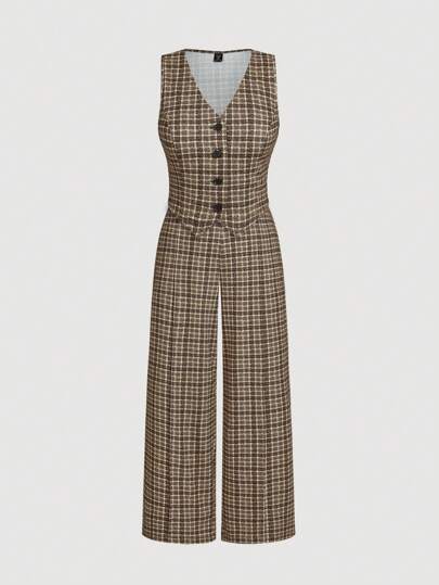 SHEIN MOD Plus Size Plaid Vest & Straight-Leg Pants 2 Pieces Set - Multicolor - View 1