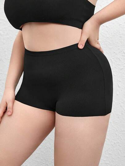 Ocili Leisure Plus Size Solid Color Underwear, Daily Leisure - Black - View 6