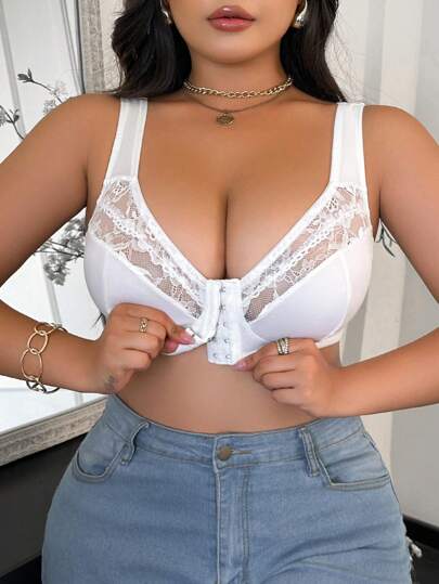Plus Size White Lace Patchwork Adjustable Front Button Camisole Lingerie - White - View 1