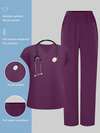 cimmuovere Women's Scrubs Set - Round Neck Short Sleeve Top And Loose Pocket Solid Color Pants, Nurse Scrubs Workwear For Dentist, Healthcare, Pet Hospital, Laboratory