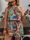 SHEIN Clasi Curve Plus Size Women's Daily Casual Vacation Sleeveless Round Neck Halter Neck Printed Waist Long Jumpsuit,Off The Shoulder ,Business Casual Woman,Going Out ,Overalls Women,Old Money Style Women,Summer Outfits For Women,Summer,Vacation,Women Summer Clothes,Vacation Outfits Woman,Jumpsuits For Woman,One Piece Jumpsuit Spring/Summer Outfit Women