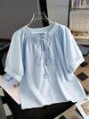 GalTyme Plus Size Casual Solid Color Button-Up Long Sleeve T-Shirt, Autumn