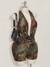 Slaydiva 2025 New Versatile Casual All-Match Beach Short Sleeve Jumpsuit/Rompers For Women, Summer, With Belt - A Brown Dress Plus Size Brown Romper Plus Size Short Sets Earthy Plus Size Brown Romper Women