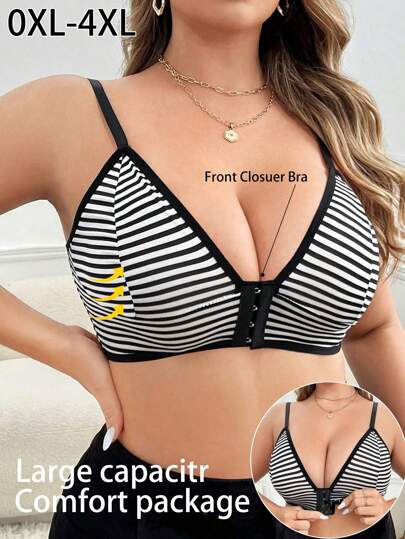 Plus Size Women Front Closure Seamless Comfort Bra, Wireless - Multicolor - View 1