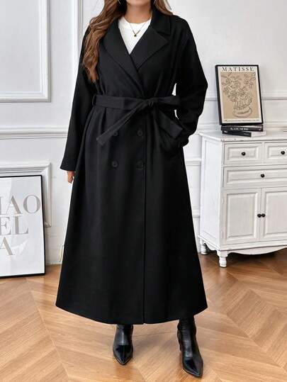 Plus Size Women Plain Color Casual Mid-Length Overcoat, Autumn/Winter - Black - View 1