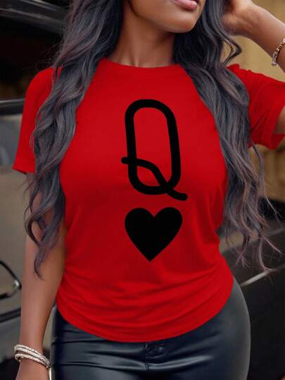 SHEIN CURVE+ Plus Size Women Short Sleeve Crew Neck T-Shirt, Minimalist & Fashion, Suitable For Summer - Red - View 1