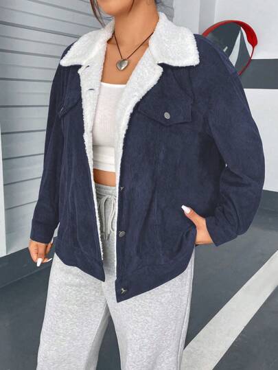 Flirla Plus Size Women's Corduroy Casual Jacket With Collar - Multicolor - View 1