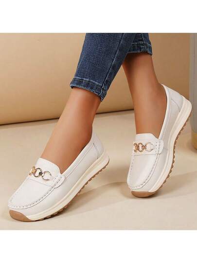 Plus Size Women's Versatile Casual Soft Bottom Non-Slip Durable Loafers, Multi-Color, Suitable For All Seasons - Beige - View 1