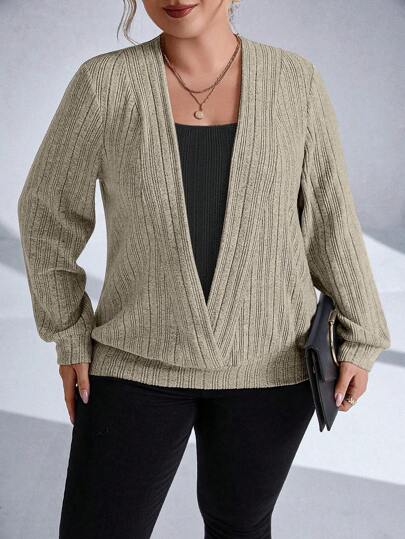 SHEIN LUNE Plus Solid Rib-knit Sweatshirt - Multicolor - View 1