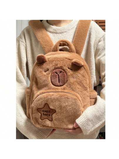 Plush Backpack: Cute Style And Functionality, Capybara Design - Cafe - View 1