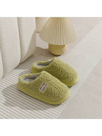Plush Women's Home Warm Slippers - Green - View 1