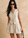 Poéselle Women's Plain Single-Breasted Round Neck Casual Tank Top