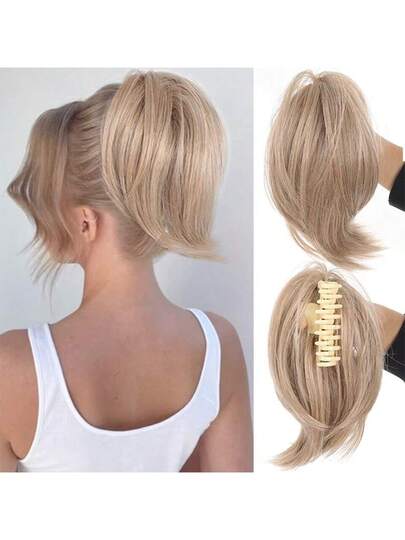 Ponytail Extension Claw Clip Short Pony Tails Hair Extensions For Women Synthetic Wavy Hairpieces For Daily Use - Multicolor - View 1