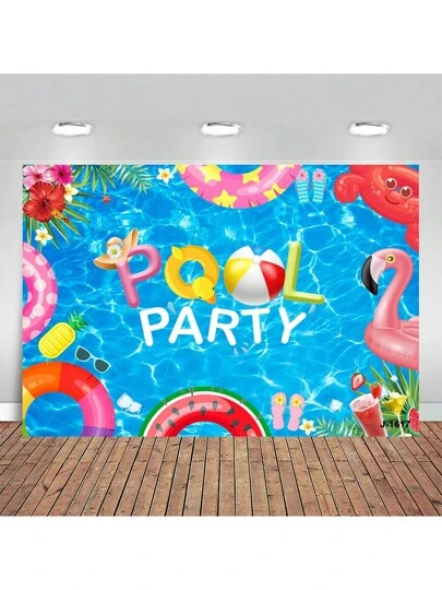 Pool Party Backdrop For Birthday Party Summer Pool Party Banner Backdrop Beach Party Supplies For Birthday Tropical Swimming Party Cake Table Banner - Khaki - View 2